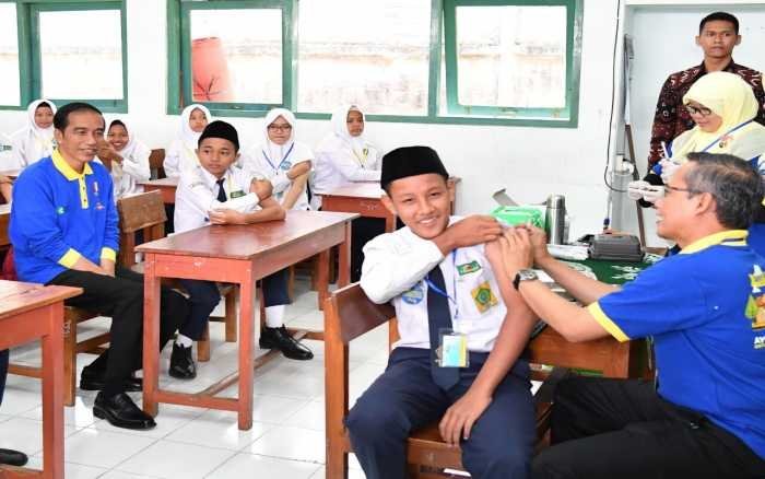Presiden Joko Widodo sedang menyaksikan imunisasi campak dan rubella. | Foto : Istimewa.